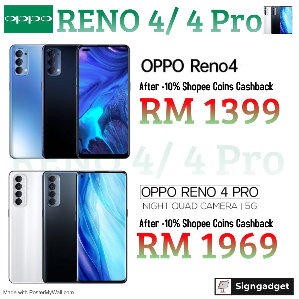 Latest Oppo Reno4 Pro price in Malaysia is Price MYR1868 and detail specs Get Market Rate of Oppo Reno4 Pro online before buying Oppo Reno4 Pro in my. The cheapest price of Oppo Reno4 SE in Malaysia is MYR136382 from Lazada. OPPO Reno 4 Pro Price in Malaysia.